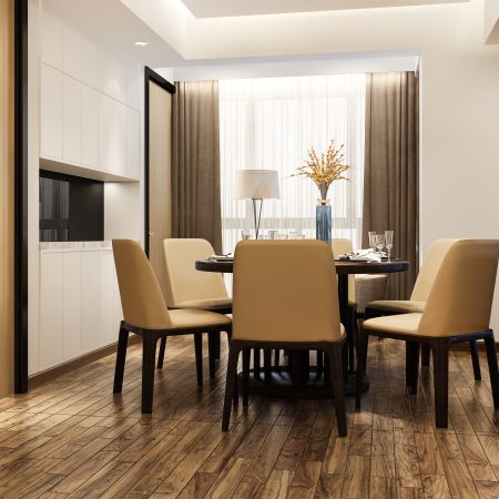 Laminate flooring looks like traditional hardwood flooring but comprises several materials bonded together under high pressure. This construction makes it durable and resistant to scratches, stains, and fading. It is also less prone to allergens and odors.